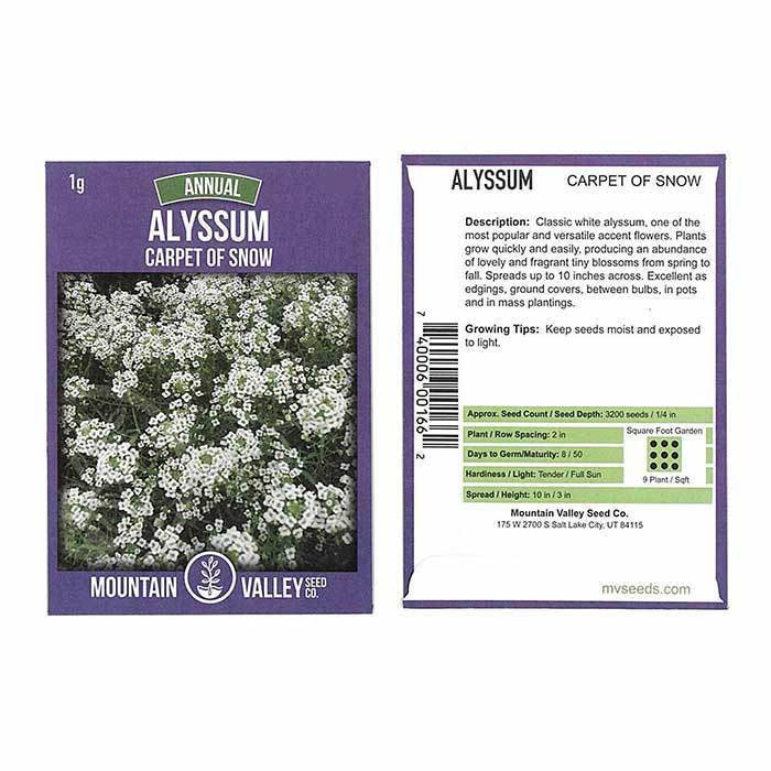 - Diseases/Pests/Troubleshooting: Carpet of Snow Alyssum Flowers are a very easy plant to grow directly from seed. Alyssum Flowers have no serious susceptibility to any pests or diseases.