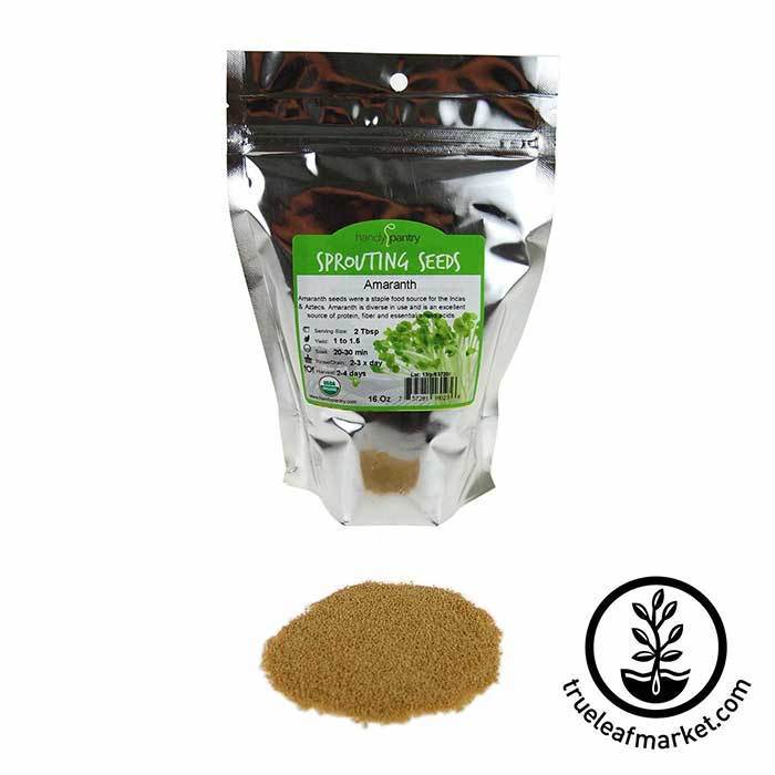 Amaranth seeds were a staple food source for the Aztecs & Incas and are used as a bulk cereal grain today in South America & Africa. Amaranth seeds and sprouts are an excellent source of protein, fiber and essential amino acids, and are a great addition to emergency home food bulk storage.