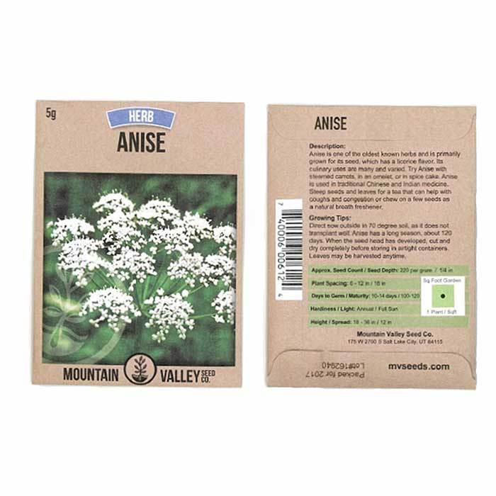 Non-GMO Anise Herb Seeds. Open-pollinated, Heirloom. Anise is native to the Mediterranean, North American, and Asian regions. Anise has been known to aid in an upset stomach and cough. Used by Native Americans to freshen breath, chewing leaves and stems after a meal. Used also in soaps, perfumes, and sachets because of its aromatic properties. Anise does best in regions where the soil is approximately 70 degrees.