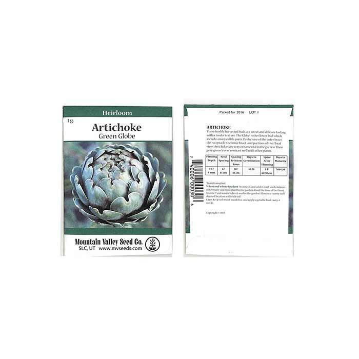 150+ days. Perennial Artichoke Gardening Seeds. Heirloom, non-gmo. Native to the Mediterranean, Green Globe Artichoke seeds have been grown for decades and their fruits eaten by and reserved for the noble and rich in ancient Greece and Rome. In addition to a mild flavor similar to asparagus, Artichoke vegetable plants can grow to be large, interesting focal points in gardens. Vibrant green stalks are adorned with intriguing leaves and topped with buds, which can turn purple if left uncut. Artichokes grown from seeds are rich in antioxidants, and can be grown as an annual in climate zones 5-7, or as a perennial in zones 8 and higher.