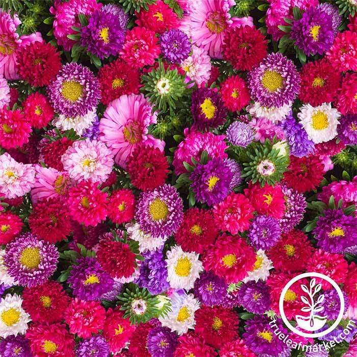 Aster Flower Seeds - Powderpuff Mix - Annual. Open Pollinated.