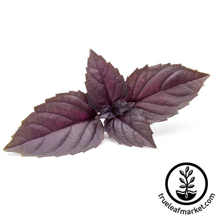 68 Days. Annual. A dark-purple variety in both leaf and stem. Perfect for microgreens, this strain will also produce nice Italian large leaf type leaves with not only great color but wonderful fragrance and bold spicy taste as well. Really too pretty for the herb garden – mix it in with your ornamental beds and containers!