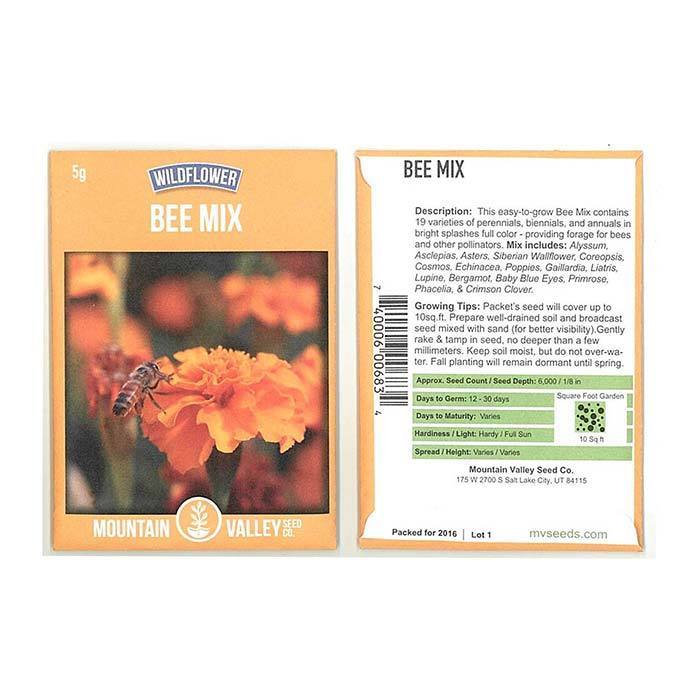 Annual and perennial mix. Bee Friendly Wildflower Mix seeds grow some of the season's most durable and hardest working flowers in any garden. Bee Mix wildflower seeds contain a blend of 19 hardy varieties of bee-friendly flowers including asters, primrose, echinacea, cosmos, coneflower, California Poppy, and Baby Blue Eyes. Wildflower Bee Mix seeds grow to attract beneficial pollinators to your fruit and vegetable gardens, promising healthier plants and more abundant yields. Growing bee-friendly garden plants, such as wildflower Bee Mix, is one of the most important contributions you can make towards sustaining your local honey bee population.