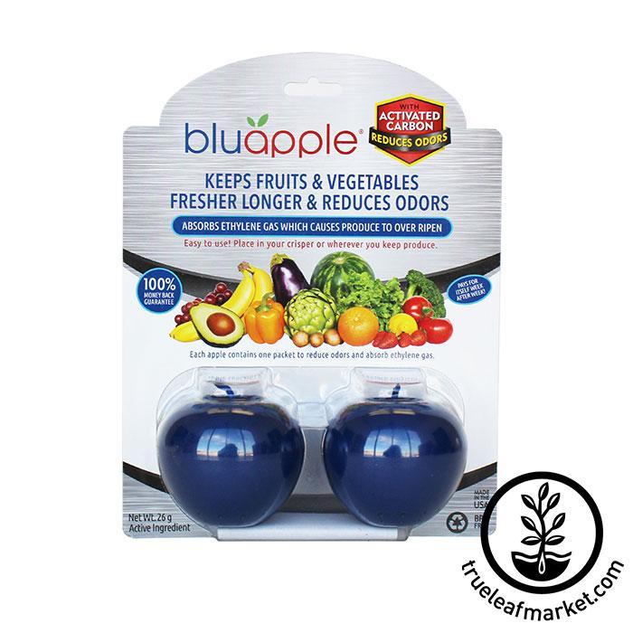 Refills available. Use Bluapple to keep produce fresher longer! Simple to use. Include one Carbon Activated Bluapple on your counter with fruit, in each of your refrigerator crisper drawers or wherever you store produce. The bluapple comes pre-filled with an ethhlene gas absorber packet and activated carbon that reduces odors in your fridge.