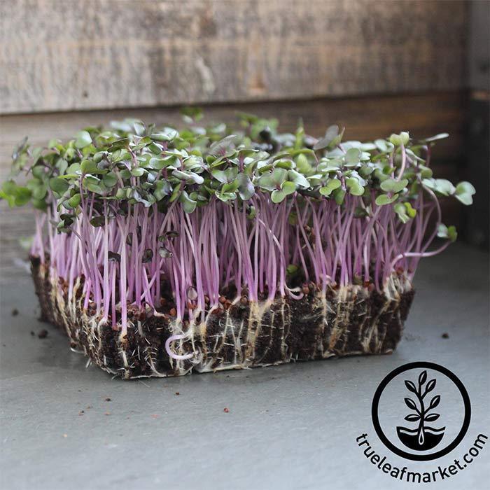 6-14 days. Red Acre Cabbage microgreens grow petite red and violet stems with variegated shades of green leaves. A very popular seed to add to microgreen mixes. Pairs well with other brassicas and radish. Makes a fantastic garnish!