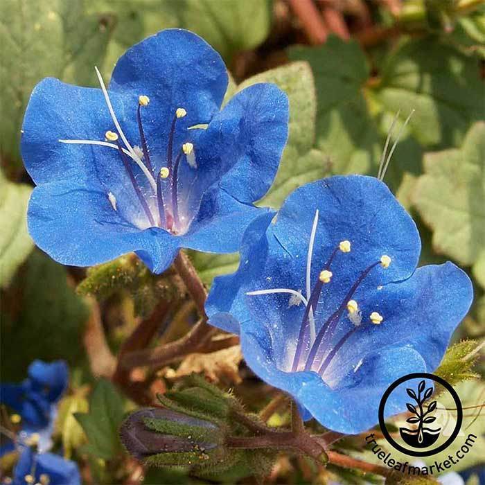 California Bluebell phacelia is easy to grow from seed and recommended for direct sowing outdoors after the frost. California Bluebell has a vigorous full sun wildflower habit and there is little need to start indoors but, for earliest blooms, begin seeds indoors 6 – 8 weeks prior. If potting indoors, be sure to place California Bluebells in a warm window spot with full sun. Lightly cover 2 – 3 California Bluebell phacelia seeds with 6 – 9” apart in organically rich, evenly moist, and well-drained soil in full sun. California Bluebell phacelia can be susceptible to downy and powdery mildew if not properly drained or ventilated. Do not overwater because phacelia is native to the California deserts and performs well in dry and poor soils. Cut back spent foliage, leaves, and blooms after flowering to prolong vitality into the fall. Phacelia has no serious pests or diseases but monitor regularly for aphids and white flies. California Bluebell phacelia matures in as quickly as 80 days as 12 – 24” tall upright shrubs with a 9 – 12” spread covered in 2" bell-shaped royal blue and cobalt blooms.