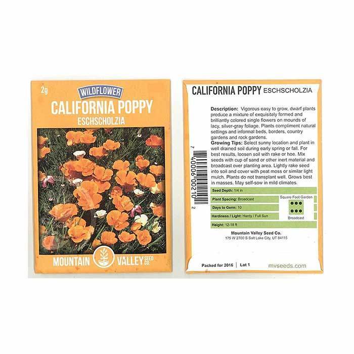 56 – 70 days. California poppy seeds grow one of the most radiant, iconic, and all-American blooms ever! California poppy seeds promise a touch of coastal California in your garden with 3” golden orange blooms and cold hardy silvery greens. California poppies are native to the cool and temperate stretches of the Pacific Northwest down into Mexico but will thrive in a variety of gardens across the continent. California poppy seeds are an ideal grow along walkways, fences, and flower beds but compact enough to keep indoors or up on the patio.