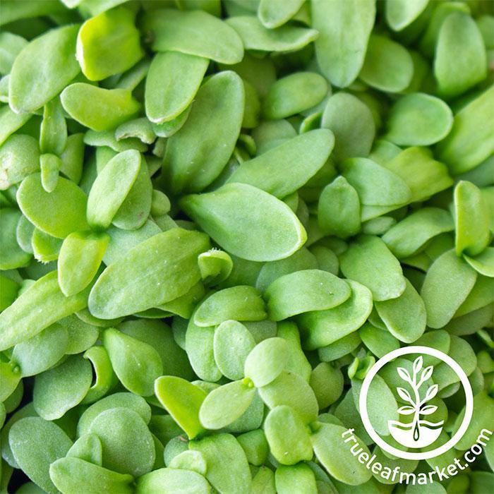This Chrysanthemum (also called garland daisy) can be grow to a maturity with yellow and white blooms, but also popular as edible greens and microgreens. Chrysanthemum coronarium. Non-GMO, Annual. A popular Green in Asia for a variety of uses, it is also known as Chop Suey Green. This Broad Leaf variety has smooth oblong light green leaves with a fresh pleasant flavor. Approx 10,000 Seeds per Oz.