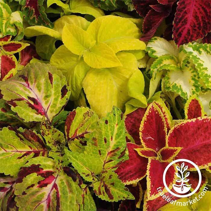 Rainbow Mix coleus seeds are popularly grown as both indoor and outdoor favorites. For earliest spring color, start Rainbow Mix seeds 8 – 12 weeks prior and seeds will germinate in 7 – 14 days in full lighting. If planted outside, coleus is commonly repotted in the fall to be kept indoors over winter and reintroduced in the spring. Plant 2 – 3 Rainbow Mix coleus seeds 10" apart and ¼” deep into loose, organically rich, and well-drained soil in partial sun to partial shade. Rainbow Mix seeds will benefit from shade in long summers and direct heat. Do not let soil dry out, but do not over-saturate plants either. Coleus has no serious pests or insects, but monitor regularly for aphids and white flies, particularly on indoor plants. Rainbow Mix coleus seeds mature in 84 – 91 days as 12 – 15" tall dwarfed creeping shrubs with a 9 – 12” spread of densely packed leaves.