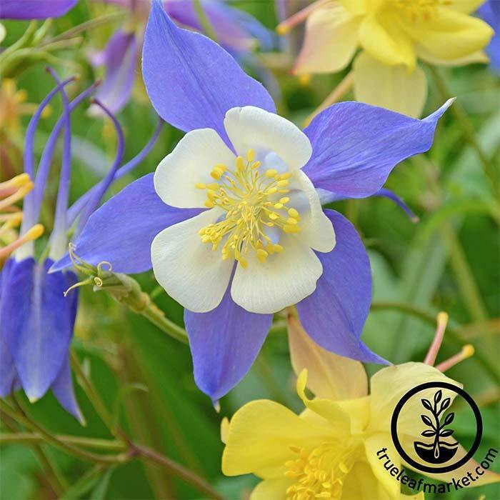 Aquilegia x hybrida, or simply known as Columbine, is a bushy wildflower perennial native to the 6,000+ foot elevations of the Rocky Mountain regions including Montana, Idaho, and down into Arizona and New Mexico. The genus Aquilegia earns its name from the Latin word meaning "eagle" because the bloom resembles an eagle's talon. Columbine is the official state flower of Colorado.