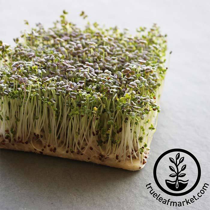 Mustard Microgreens grow quickly and uniformally like most brassicas in the right conditions. A fairly warm spot with good airflow and light. Spread your mustard seeds over the surface of your chosen medium whether that be soil or a hydroponic medium. Spread them across the surface; the more dense, the thicker the greens will be. Beware of too many seeds because that can lead to overcrowding and ultimately, crop failure. After the seeds are sown, place something over the tray to block out any light for the first 2 days—the seeds will germinate in the dark. After those 2 days, remove the cover and place your tray in a sunny area or under light. We recommend using grow light, since growing them next to a window can cause your greens to lean and become stemmy.