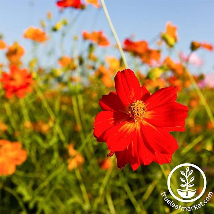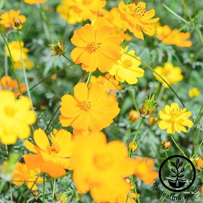 56 – 63 days. Sunny Series seeds promise a stunning and exotic twist to the more traditional summertime cosmos. Sunny Series cosmos seeds quickly grow compact 12 – 14” tall mounding shrubs covered in radiant 2” blooms in your choice of Gold, Red, and Orange. Cosmos seeds are native to the demanding arid stretches of Mexico and are perfectly suited for a variety of similarly hot and challenging gardens. Sunny Series cosmos seeds boast some of summer's most gorgeous blooms and are a favorite to leave trailing from hanging baskets, window boxes, and planters. 500 seeds.
