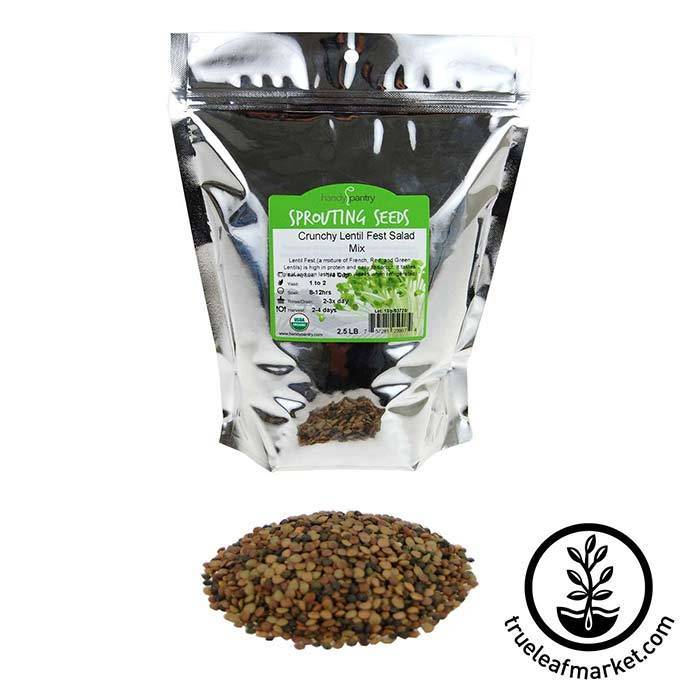 This organic lentil salad mix includes: Green Lentils, Red Lentils & French Lentils. Great for sprout salads & soups. Available in several quantities in resealable packaging. One of our most popular mixes. High germination rate. Certified Organic.