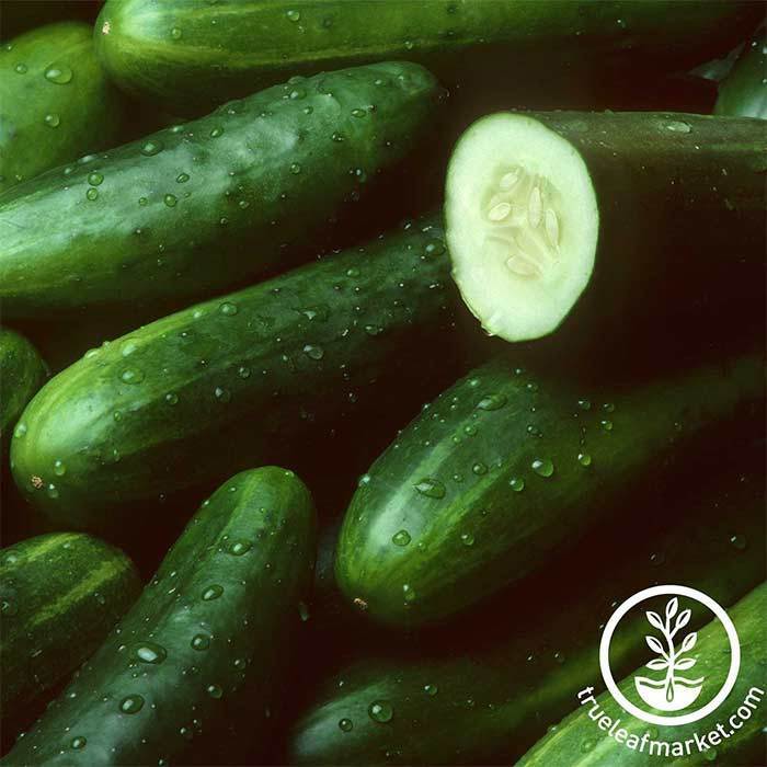 60 days. The Sweet Success Hybrid cucumber is a large variety of cucumber that is sweet and tender. The Sweet Success Hybrid is dark green and smooth, and grows to be twelve inches long. Since this variety is mature in sixty days, a steady harvest can be achieved by planting regularly throughout the season. AAS Winner. Recommended by USU. An excellent burpless hybrid suitable for growing outdoors or in a greenhouse. The 14 inch long, straight fruits are very mild, sweet, and seedless if grown away from other varieties. Outstanding gynoecious (all female flowers) and parthenocarpic (sets fruit without pollination) hybrid. Excellent for Utah's climatic conditions. CMV, DM, Sc, TLS. Approx. 850 seeds/oz.