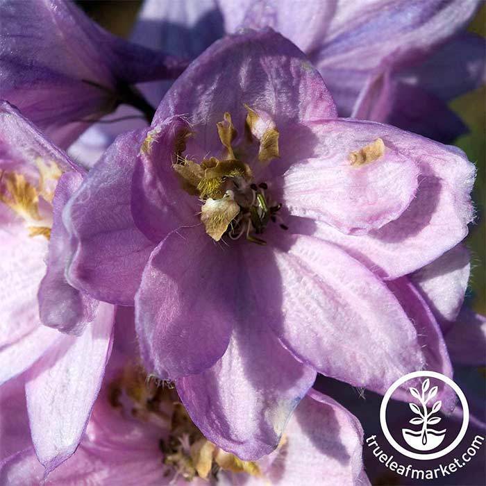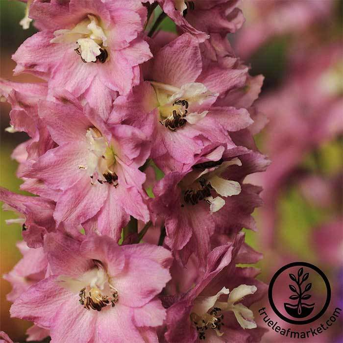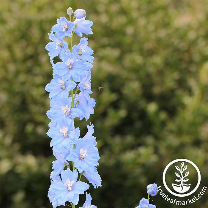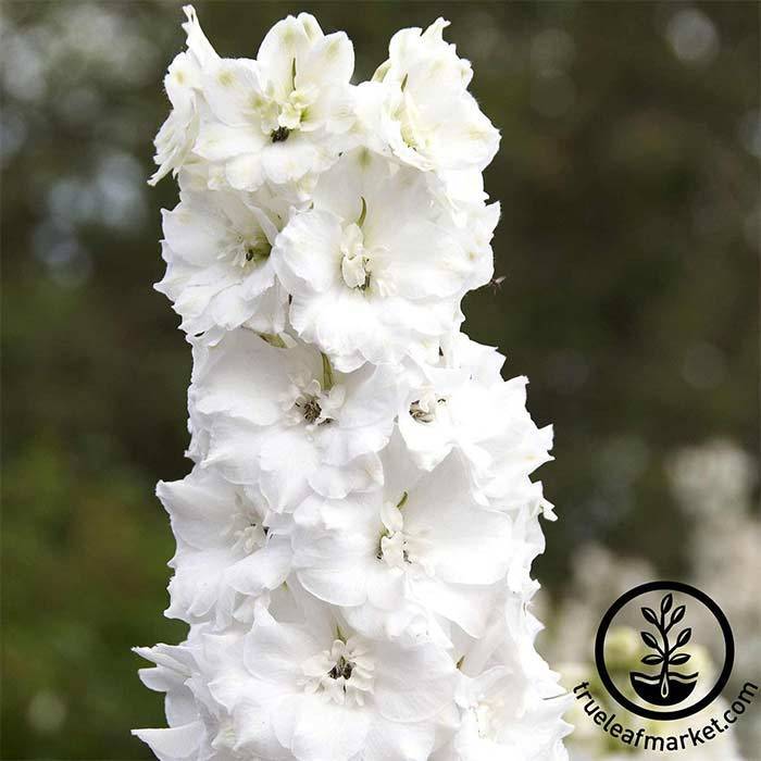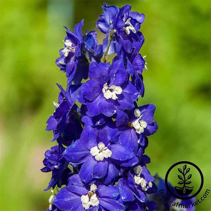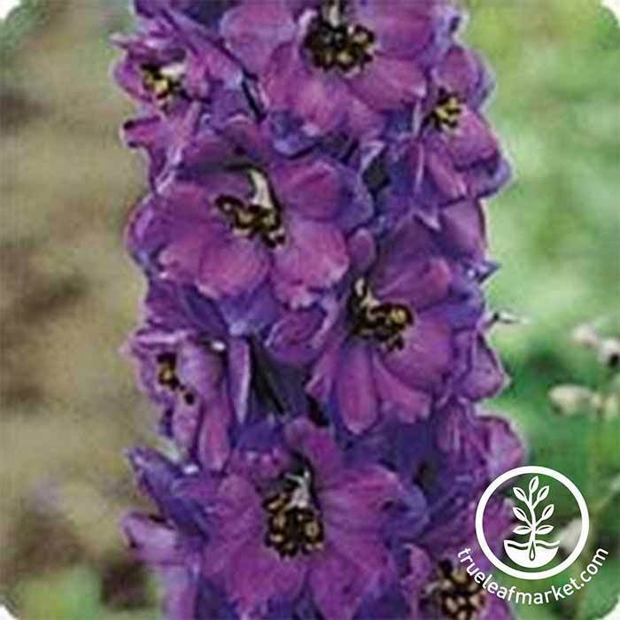 Delphiniums are known to be a challenging grow and best started indoors 10 – 12 weeks prior to the frost. Pacific Giant Series seeds will germinate in 7 – 14 days with full lighting then place seedlings under a grow light and harden off to an equally sunny spot either in the garden or indoors. Starts may require early staking that must be readjusted as plant matures. Plant 3 – 4 Pacific Giant Series delphinium seeds ½” deep and 36” apart in organically rich, evenly moist, and well-drained soil in full sun. Delphinium is known to require considerable maintenance including staking, disease prevention, and heavy pruning and deadheading. Delphinium is generally susceptible to powdery mildew, botrytis blight, leaf spots, and crown rot if oversaturated from not being not properly drained or ventilated. Water plants at the base to prevent wetting the foliage. Watch Pacific Giant Series regularly for aphids and mites, but monitor especially for damaging slugs and snails. Pacific Giant Series delphinium seeds are perennials that mature in their second year as 48 – 60” uprights with a 24 – 36” spread of densely floreted blooming spikes.