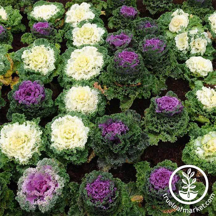 91 – 98 days. Kamome Series flowering kale seeds promise a timeless frost-hardy highlight to any temperate home or garden. Kamome Series seeds grow tidy 8 – 12” dwarfed flowering kale bursting with either Pink, Red, White, or Mixed ruffled edges. Kamome Series belongs to the acephala group or “headless” variety of kale and boasts a blooming, flowery, and showy mound rather than the common store-bought variety. Kamome Series is easy to grow from seed and delivers spectacular cool-season color that will dazzle when others can’t. 1000 seeds.