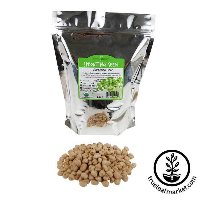 When sprouted this dried garbanzo bean seed has a nutty flavor suitable for marinating or as additions to salads or loaves. Three-fourths cup of dried organic garbanzo beans chick peas makes about one quart of sprouts. The dried organic garbanzo bean seed will be ready to harvest and eat in 3 to 5 days.