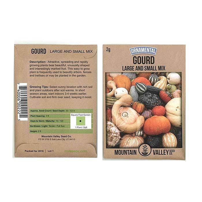 90-120 days. This mix of small and large, non-gmo gourd seeds is a collection of gourds that will grow into different shapes and shades, including green, white and yellow. The Gourds seeds do best in well-drained soil and full sun.