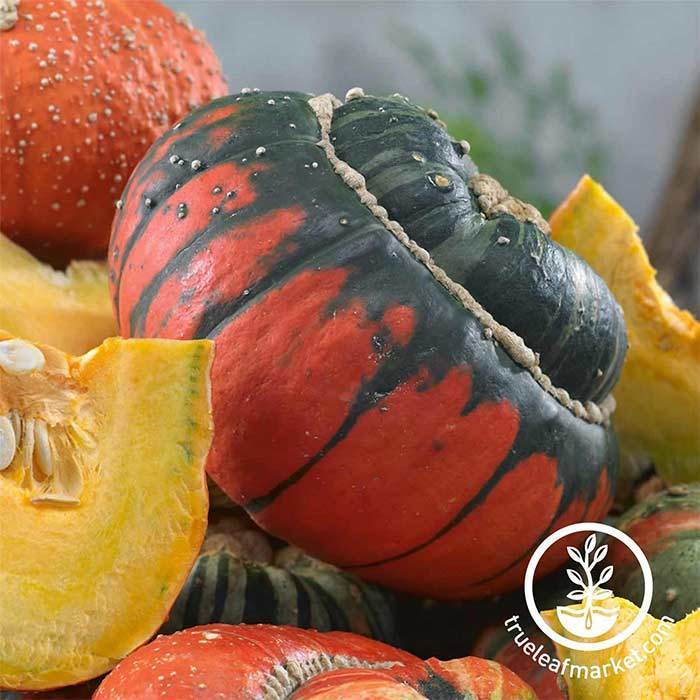 100+ days. Brightly colored ornamental squash has large, flattened fruits measuring 8 to 10 inches across. "Buttons" striped with scarlet, white, orange, cream and green. Edible. Approximately 114 seeds/oz. Turk's Turban Gourd seeds yield orange gourds that have a flavor similar to squash. The Gourd seeds do best in well-drained soil and full sun, and can be harvested off the vine when ready.