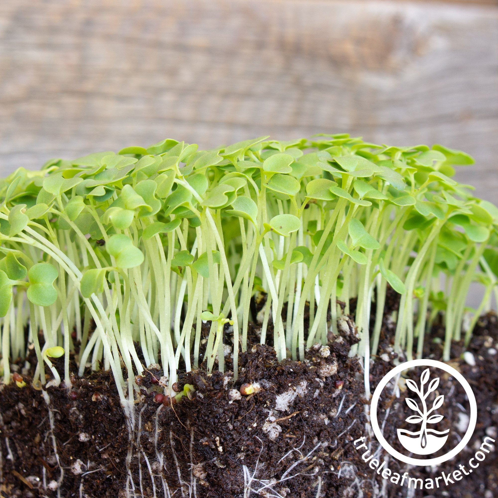Green Mustard Microgreens Seeds. Brassica juncea. Non-GMO. Light green in color spicy mustard greens flavor. Can be grown as microgreens (harvest in 8 to 12 days) or seed more sparsely and harvest as baby greens (21+ days) Grow only in soil.