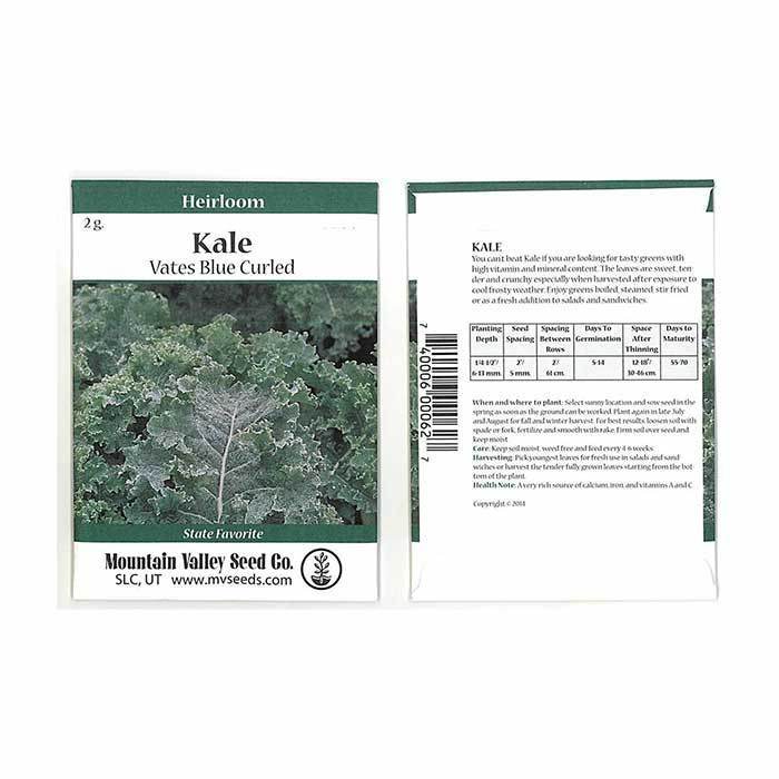 60 days. Heirloom, Non-GMO. Vates Blue Scotch Curled Kale is a high yielding variety high in nutrients. This crop is leafy and green in color. Vates Blue Scotch Curled Kale dates back to the 1700's and does well in all grow zones, with full or partial sunlight. Approx. 8,500 seeds per oz.