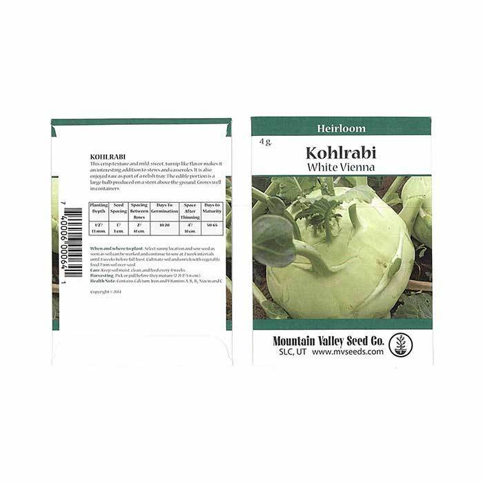 55-60 days. Non-GMO Early White Vienna seeds produce kohlrabi with light green bulbs. The flavor is mild, resembling the taste of a turnip. Kohlrabi can be grown in zones 3 to 9. This variety is mature in 55 days, making this an earlier option than the Purple Vienna Kohlrabi. Approx. 8,500 seeds per oz.