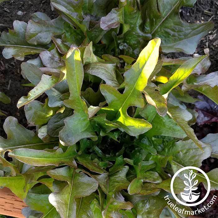 Non-GMO Bronze Guard Leaf Lettuce (Lactuca sativa ‘Bronze Guard’), is a type of leaf lettuce, favored for its beautiful color, it’s often used as a garnish. With a bitter, but still flavorful taste, it’s great in salads. The leaves are curled, with a light red color contrasting the green. It is very juicy for lettuce.