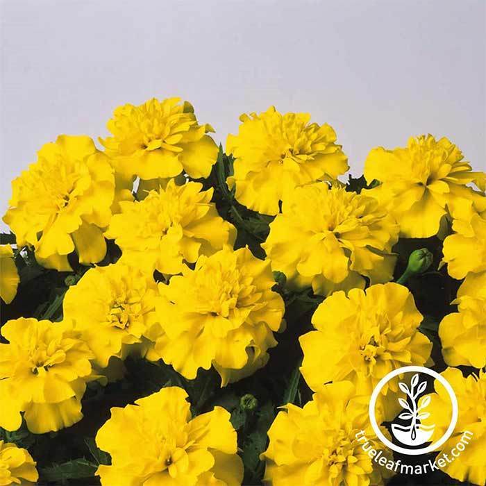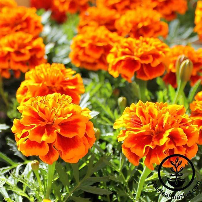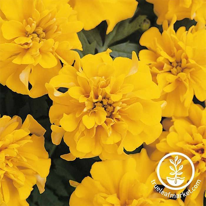 Bonanza Series marigold is a hardy full sun performer and most commonly sown directly after the frost but, for earliest blooms, begin seeds 6 – 8 weeks indoors prior to the frost. Marigolds will take 7 – 21 days to germinate in full lighting. Plant 2 – 3 Bonanza Series marigold seeds ¼” deep and 6” apart in average, evenly moist, and well-drained soil in full sun. Bonanza Series marigold is a vigorous full sun performer native to Mexico and known to tolerate gardens prone to heat, drought, and clay soils. Plants must be properly drained and ventilated are may be susceptible to powdery mildew, root rot, leaf spots, and Botrytis. Marigold has no serious pests but monitor regularly for spider mites and thrips. Bonanza Series marigold seeds mature in 56 – 63 days as dwarfed 8 – 12” tall shrubby uprights with a 12 – 24” spread of large 2” blooms.