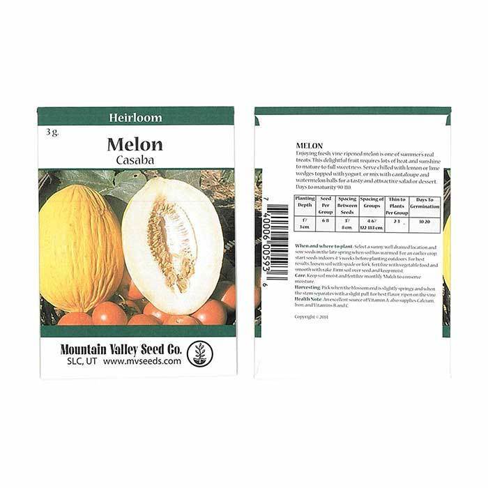 110 days. The Casaba is a mildly sweet, golden yellow melon. This garden crop grows in a vine and the Casaba is mature in 110 days. These melon seeds do best in warm soil, in zones three to nine.