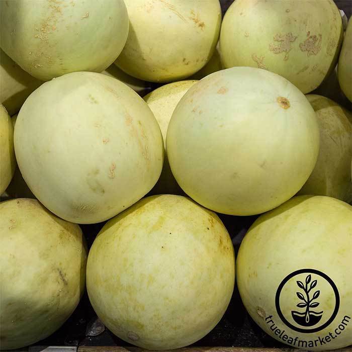 80 days. The non-GMO Earli-Dew Hybrid Honeydew melon seeds produce smooth melons with light green interiors and a sweet flavor, growing to be between two and three pounds. The honeydew melons are ripe in eighty days and do best in grow zones 4 to 11. Harvesting is an easy process and can be done by hand. Recommended by USU. Round, 6 to 8 inch, 7 pound smooth-skinned melon with very sweet green flesh. Vigorous vines yield plenty of fruit. Resistant to Fusarium Wilt. Approx. 1,060 seeds/oz.