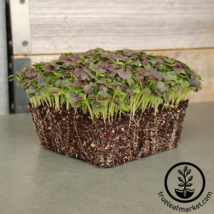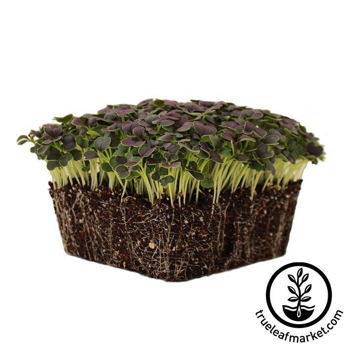 Brassica rapa Narinosa Group. Non-GMO. Red Tatsoi makes a lovely microgreen as well as a terrific full size cool season asian green. As a microgreen the cotyledons open green and change to a reddish purple on about day 4. It germinates quickly and is ready for microgreens harvest in 7 - 10 days.