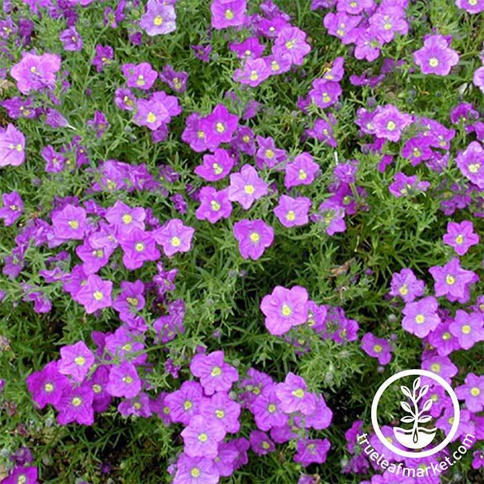 Robe Series nierembergia is easy to grow from seed and may be sown directly outdoors 1 – 2 weeks before the final frost or, for earliest blooms, start indoors 6 – 8 weeks prior. Germination occurs in 15 – 30 days with full lighting, then transplant to larger container once there are two sets of true leaves and harden off before transplanting outdoors. Lightly press and cover 2 – 3 Robe Series nierembergia seeds in moist, organically-rich, and well-drained soil 6 – 9” apart in full sun. Avoid overhead watering to minimize wetting foliage as Robe Series nierembergia seeds are susceptible to fungal and leaf diseases if not properly ventilated. Plants will benefit from shade and deadheading as they decline in mid-summer into the fall. Nierembergia has no serious pests or diseases. Robe Series nierembergia seeds mature in as quickly as 63 – 84 days as 4 – 9” tall dwarfed mounding shrubs with a 12” spread covered in 1” blooms in award-winning choices Purple and White.