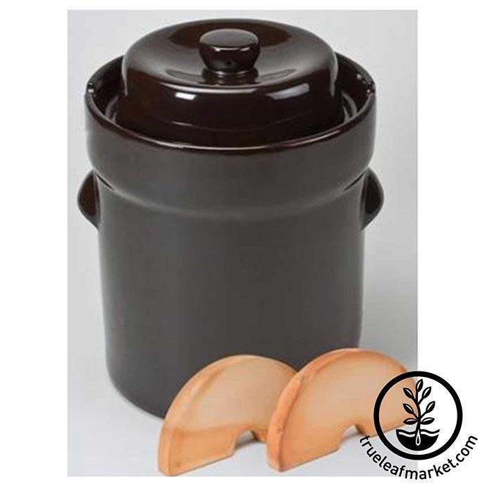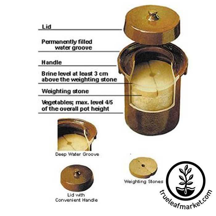 The Nik Schmitt pickling crock pots are available in sizes from 5 to 30 liters, and each includes an innovative water seal lid that allows gasses and CO2 generated by the fermentation process to escape, but prevents oxygen from entering to maintain an oxygen free fermentation environment.