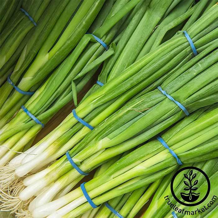 65-120 days. This popular plant produces 5 to 9 inch long, tall, crisp, silvery white stalks. Robust, strong flavor for a non-bulging onion that is slow to seed. Ideal for spring or fall planting.