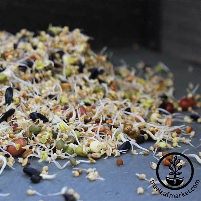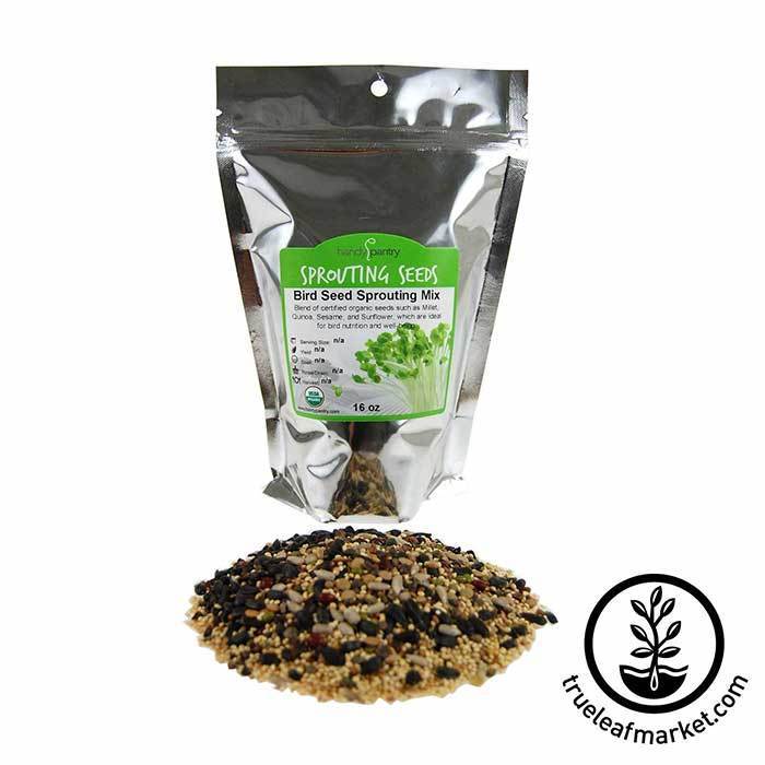 This blend of certified organic seeds is ideal for bird nutrition. And best of all your birds will love it. Serve to your birds as dry seeds or sprouted seeds. To sprout, simply soak the seed mix immersed in water over night, and drain using a colander or one of our sprouting trays or sprouting jars. Rinse the seeds twice over the next day. You don't want to let the sprouts grow long. Usually birds prefer sprouted seeds that are just beginning to show the tiny tails of the sprout just emerging from the seed.