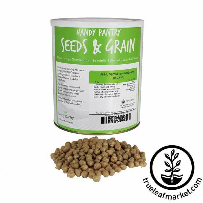 Dried Garbanzo bean seeds, AKA: Chickpeas: Garbanzo bean sprouts are high in protein and have a nutty flavor and a great crunch. Great in salads, making hummus, soups, food storage and more. Available in varying quantities, resealable packaging.