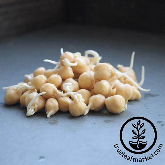 When sprouted this dried garbanzo bean seed has a nutty flavor suitable for marinating or as additions to salads or loaves. Three-fourths cup of dried organic garbanzo beans chick peas makes about one quart of sprouts. The dried organic garbanzo bean seed will be ready to harvest and eat in 3 to 5 days.