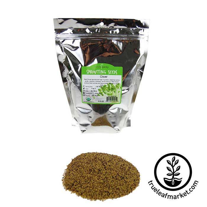 Red clover are becoming a very popular salad and sandwich sprout, very similar to alfalfa sprouts with a mild flavor with a hint of sweetness. High germination rate, available in several sizes & resealable packaging.