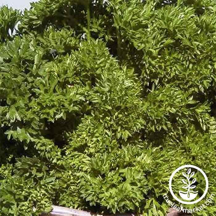 Petroselinum crispum Annual. 70 days. Finely cut, deeply curled leaves that are dark green. More decorative than the flat leaf varieties, use this parsley for garnishing, and culinary decoration. Good heat tolerance. Approx. 18,000 seeds/oz.