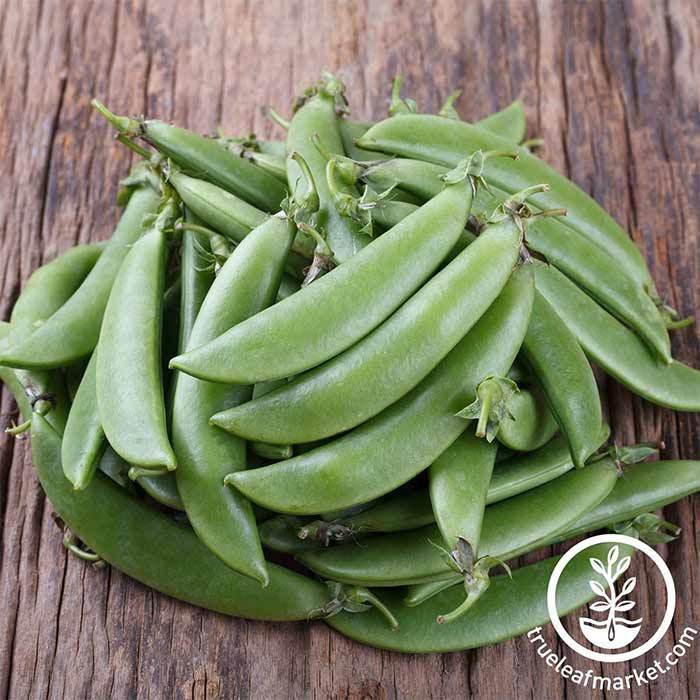 65 days. Dwarf snap pea needs no stalking. Produces 3 in long edible, stringless pods with unusually think walls. Crunchy, juicy and sweet. Has resistance to Powdery Mildew and Pea Enation Mosaic Virus.