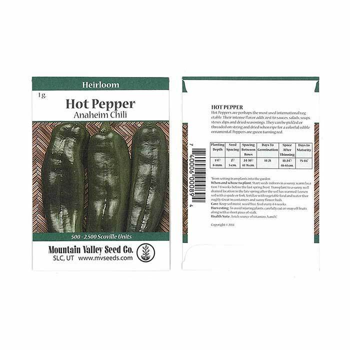 This flavorful hot pepper takes 80 days. Milder than some, these meaty chilies are 6 to 8 inch long and 2 to 3 inches wide, tapering to a blunt point. Anaheim Pepper plants grow on 28 to 34 inch plants.