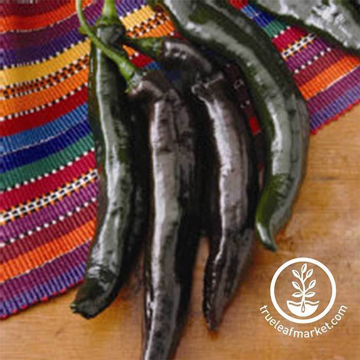 85 days. The first hybrid pasilla-type pepper which is used to make the famous mole sauce. Hybrid vigor brings very high yields of 7 to 9 inch peppers measuring 1 1/2 inches across. The fruit can be harvested green or allowed to mature to a dark chocolate color. The flavor is nutty and tangy. Mature plants can get 3 feet tall. This hybrid has exhibited resistance to tobacco mosaic virus. Scoville units: 600 - 900. Approx. 4,000 seeds/oz.