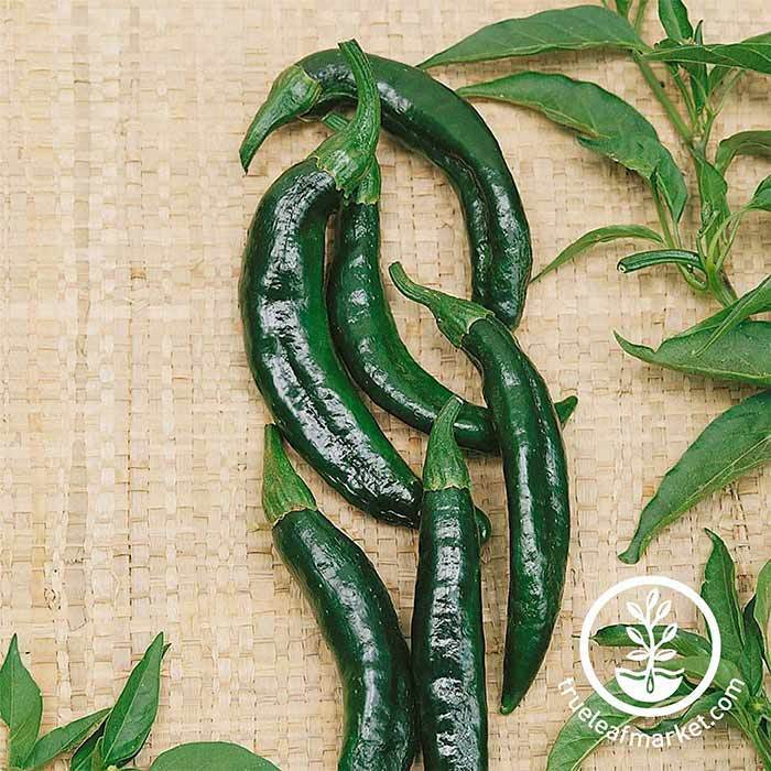80 days. Mildly hot a slightly sweet, slender 8 to 14 inch pepper turning dark-green to red and finally to brown. Unique rich flavor that used in 'mole' and other Mexican dishes. Often called Chilaca when green. Scoville units: 1,000 - 2,000. Approx. 4,000 seeds/oz.