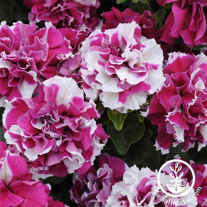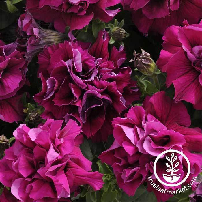 98 – 105 days. Double Madness Series seeds grow a hardy and spectacular alternative to the internationally famous single-blooming petunia. Double Madness petunias promise feathery and double-blooming 3” wide papier-mâché heads in a signature choice of Burgundy, Lavender, Salmon, Pink Satin, Red and White, Rose and White, or Mix. Double Madness Series petunias mature into neat 10 – 15” tall mounded uprights perfect as a tidy grow in beds, borders, edging, or ground cover. Double Madness petunias are easy to grow from seed and are an ideal way to reinvigorate any stale flower bed, patio, or room. 1000 pelleted seeds.