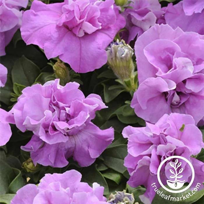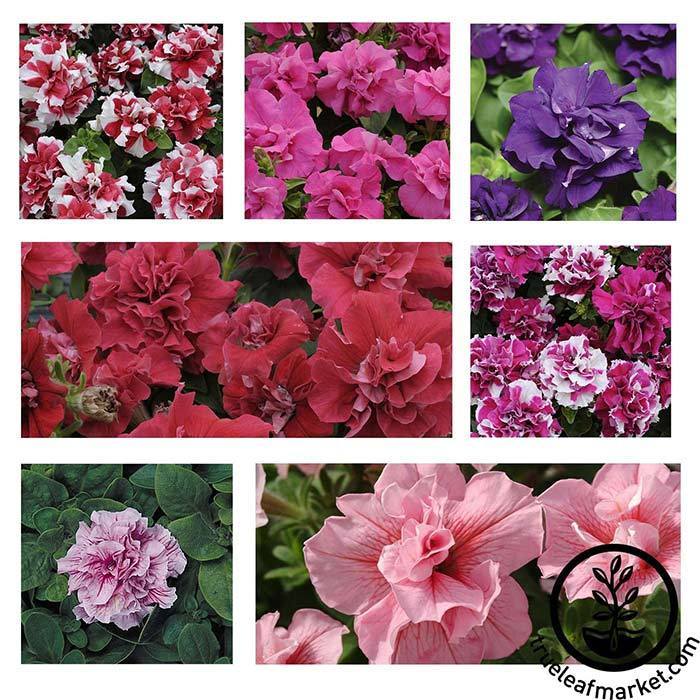 For earliest blooming, start Double Madness Series petunia seeds indoors 10 – 12 weeks before the final frost and transplant once there are two sets of true leaves. Double Madness seeds will germinate within 14 days with full lighting. If transplanting outside, harden off seedlings into a partially shaded spot in the garden, or an equally moderate place indoors. Plant 2 – 3 Double Madness petunia seeds ¼” deep and 8 – 10” apart in average, medium moist, and well-drained soil in full sun to partial shade. Avoid overhead watering to minimize wetting foliage as Double Madness petunia seeds are susceptible to fungal and leaf diseases and gray mold if not properly ventilated. Plants are known to be susceptible to blight and tobacco mosaic virus, since Petunia x hybrida is closely related to the tobacco plant. Double Madness petunias will benefit from shade and deadheading as they begin to decline in the long summer months. Petunias have no serious pests, but monitor regularly for aphids, flea beetles, slugs and snails. Double Madness Series seeds mature in 98 – 105 days as 10 – 15” tall mounded uprights with a 10 – 12” spread of papery, double 3” blooms in a signature choice of Burgundy, Lavender, Salmon, Pink Satin, Red and White, Rose and White, or Mix.
