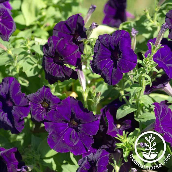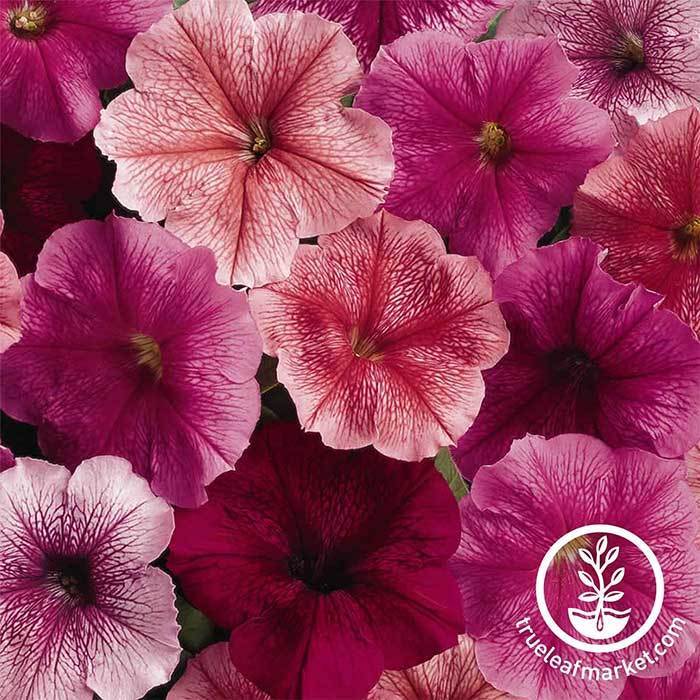 For earliest blooming, begin Madness Series petunia seeds indoors 10 – 12 weeks before the final frost and transplant once there are two sets of true leaves. Madness Series seeds will germinate within 14 days with full lighting. If transplanting outside, harden off seedlings into a partially shaded spot in the garden, or an equally moderate place indoors. Plant 2 – 3 Madness Series petunia seeds ¼” deep and 8 – 10” apart in average, medium moist, and well-drained soil in full sun to partial shade. Avoid overhead watering to minimize wetting foliage as Madness Series petunia seeds are susceptible to fungal and leaf diseases and gray mold if not properly ventilated. Plants are known to be susceptible to blight and tobacco mosaic virus, since Petunia x hybrida is closely related to the tobacco plant. Madness Series petunias will benefit from shade and deadheading as they begin to decline as autumn nears. Petunias have no serious pests, but monitor regularly for aphids, flea beetles, slugs and snails. Madness Series seeds mature in 98 – 105 days as 10 – 15” tall mounding uprights with a 10 – 12” wide spread of classic 3” blooms.