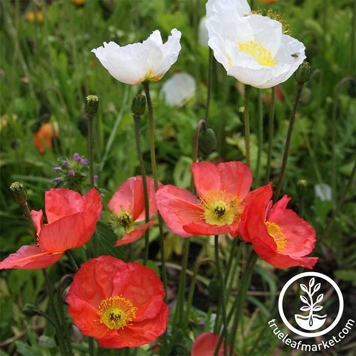 91 – 98 days. Mixed Colors Iceland poppy seeds grow year-round brilliance in your home or garden when others can not. Often planted as annuals, Mixed Colors Iceland poppy seeds are perennials that grow to be hardy, cold-tolerant, and thrive in a wide range of cool and temperate North American gardens. Mixed Colors Iceland poppy seeds promise neat 12 – 16” tall mounds bursting with spectacular 2 – 4” delicate papier-mâché blooms in a mix of red, peach, white, pink, canary, and fuchsia. Mixed Colors Iceland poppy seeds are an ideal grow indoors for adding accents and aromas to any room yet hardy enough to trim a flower bed or walkway.