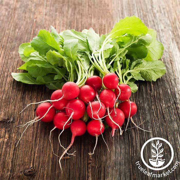 23 days. AAS Winner. Recommended by USU. Bright cherry red, round to globe-shaped. Flesh is crystal white, crisp, and mild, with short tops. Widely used for bunching and forcing. Approx. 2,500 seeds/oz.