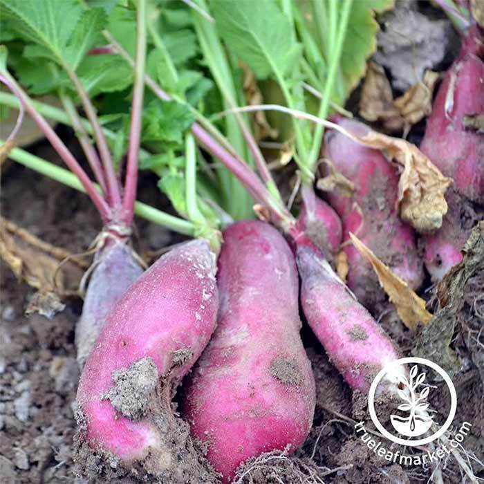 French Breakfast Radish Seeds. Heirloom, Non-GMO. 24 days. Blunt oblong, 3 inch roots are red, shading to white at the tip. Flesh is crisp, white and mildly pungent. Great home garden variety, but doesn't store well. Approx. 2,500 seeds/oz.