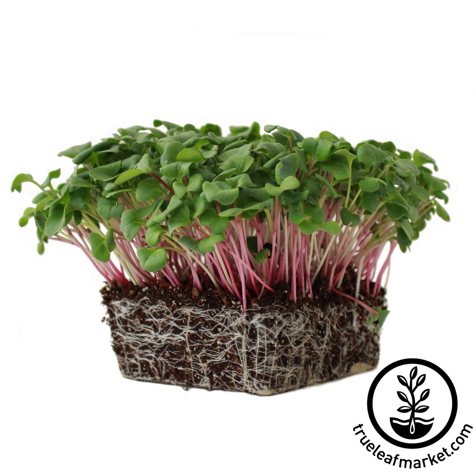 Triton Purple radish is fast and easy to grow. The microgreen is substantial and very crunchy. Due to its fast growth can be harvested as early as 5 days, assuming you have exposed to light on day 3. You can flip the lid a day before exposing to light to strengthen the crop.